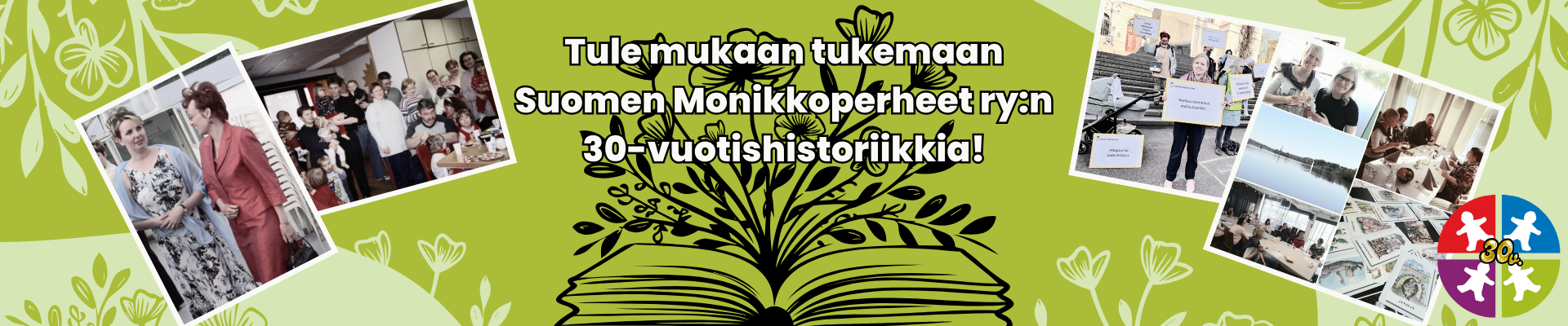 Suomen Monikkoperheet ry juhlii tänä vuonna 30-vuotisjuhlavuottaan. Sen kunniaksi julkaisemme historiikin, joka on jo lähes valmiiksi kirjoitettu ja se julkaistaan juhlaseminaarissamme 23.8.2025. Teoksen kirjoittajat ovat toiminnanjohtaja Ulla Kumpula ja sosiaalityön maisterivaiheen opiskelija Laura Lanki.