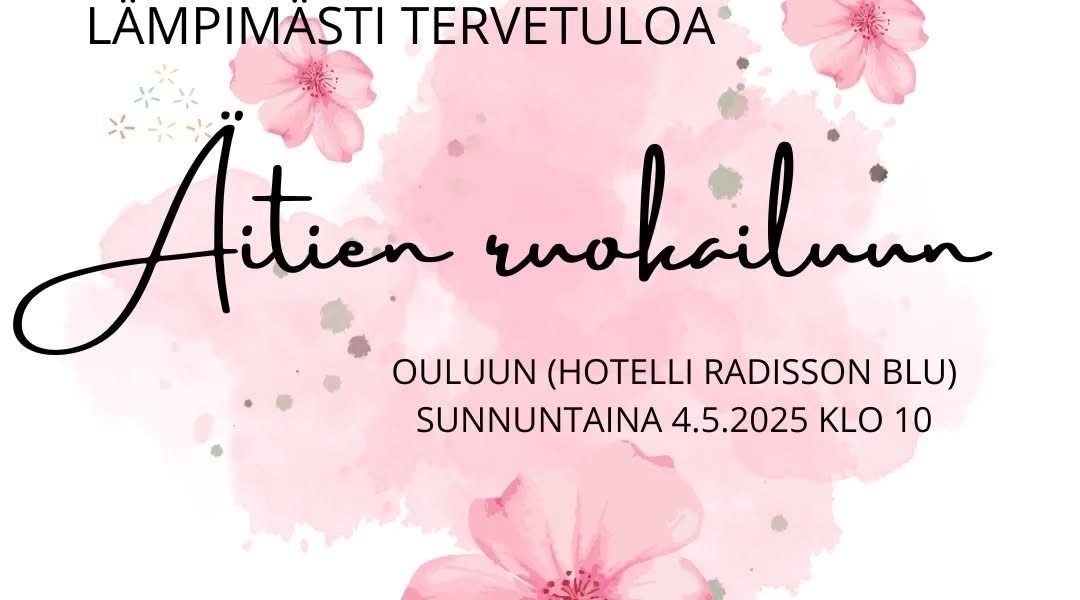 Pohjois-Suomen Monikkoperheet toivottaa kaikki monikkoäidit lämpimästi tervetulleeksi mukaan yhteiseen Äitien ruokailuun Ouluun, hotelli Radisson Blu:hun (Hallituskatu 1) sunnuntaina 4.5.2025 klo 10. Tarjolla herkullisen ja runsaan aamiaisen lisäksi vertaistukea toisilta monikkoäideiltä kiireettömästi, rauhallisessa ympäristössä.