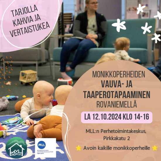 Vauva- ja taaperotapaaminen Rovaniemellä lauantaina 12.10. klo 14-16. Kaikki monikkoperheet,...