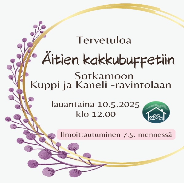 Monikkoäitien kakkubuffet lauantaina 10.5.2025 klo 12.00 Kuppi ja Kaneli Sotkamo