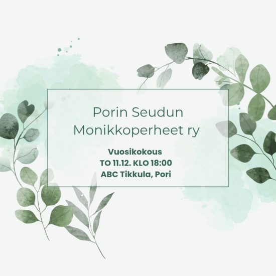 Porin Seudun Monikkoperheet ry tarvitsee uusia toimijoita Yhdistyksen vuosikokous pidetään...